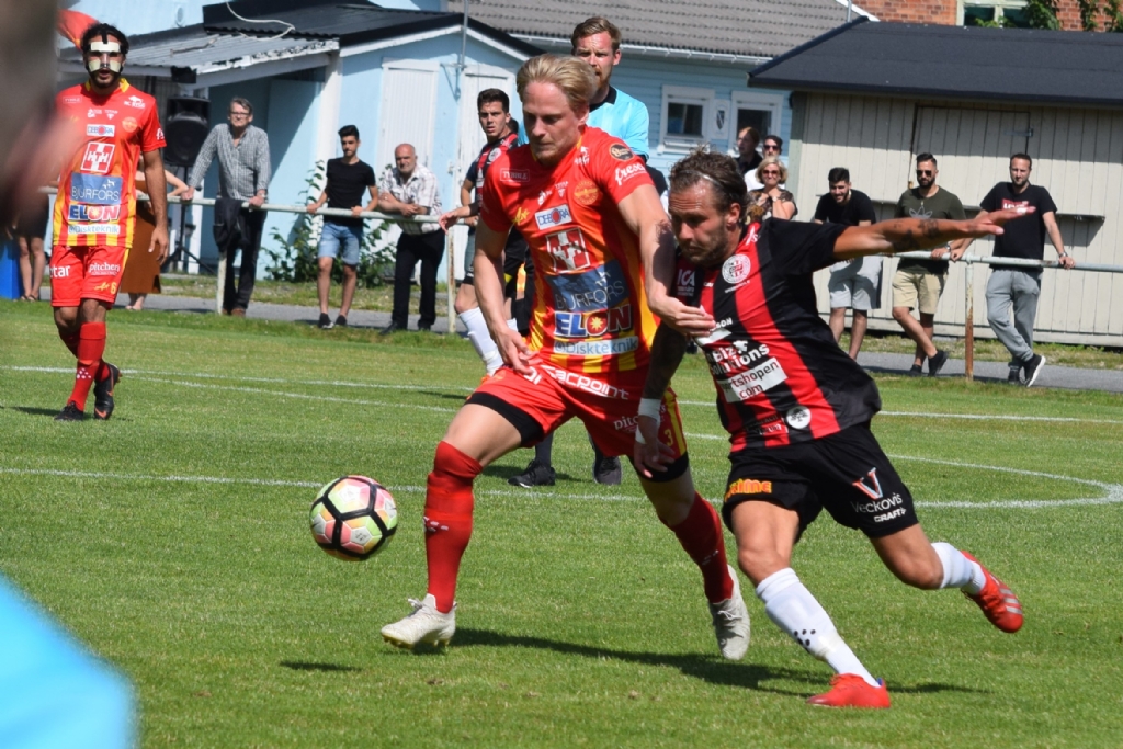 Christoffer Söderlund i kamp med en hemmaspelare