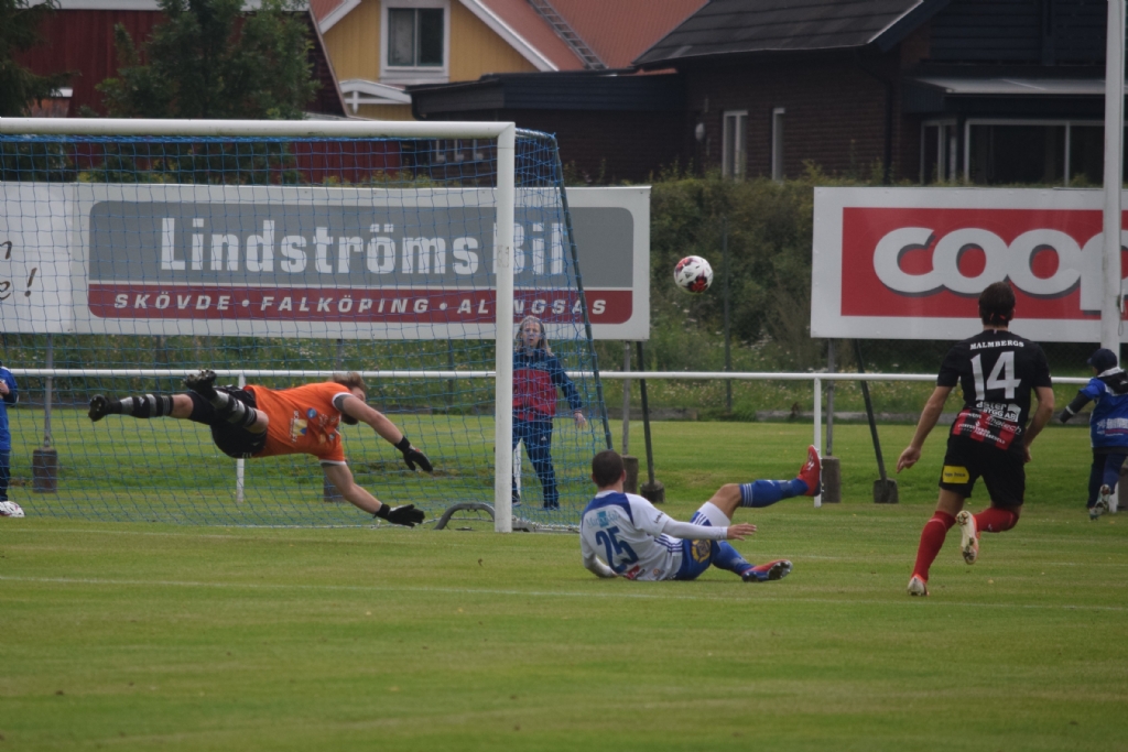 Bildserie, bild 3 av 3 John Gustavsson med en bra räddning till hörna på Oskar Linbergs skott