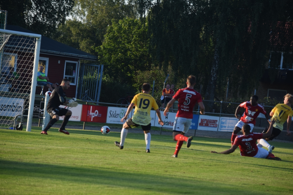 Bildserie, bild 3 av 4 Jesper Matssons skott på väg mot mål men kan Camil Altun rädda?...