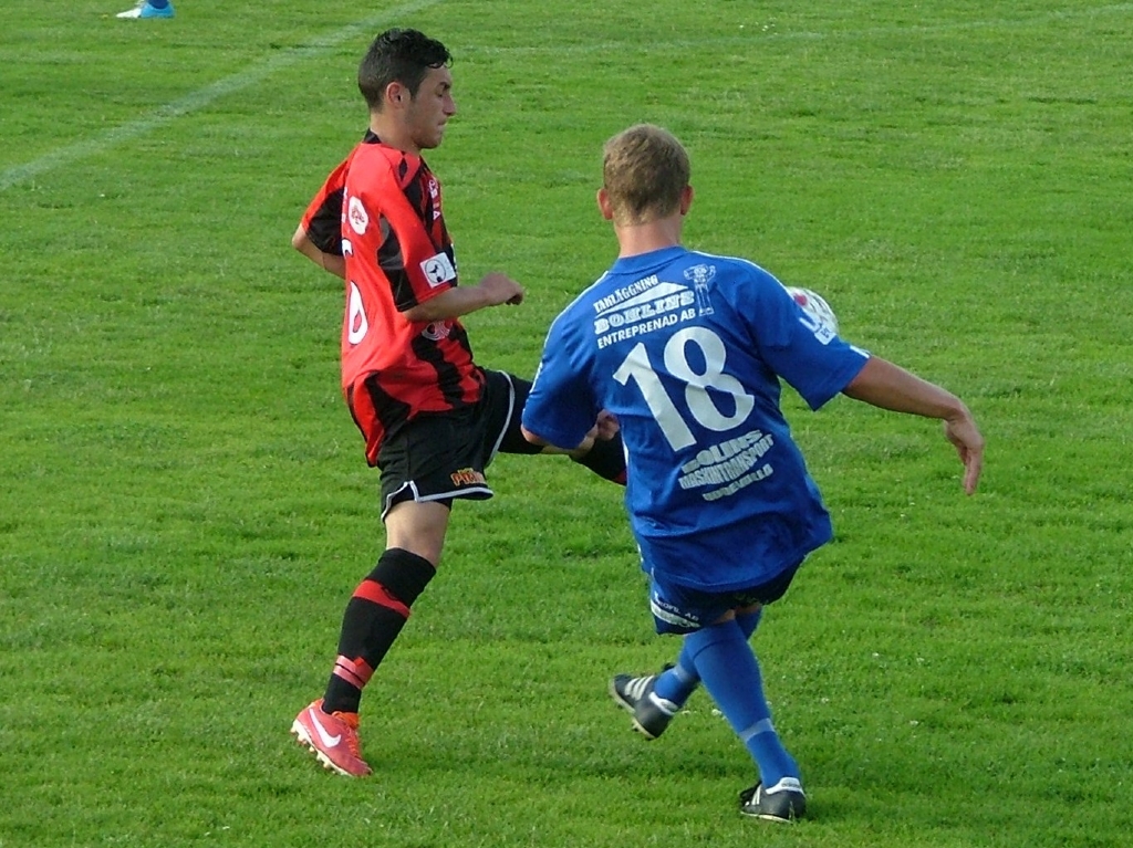 Granit Berisha försöker bryta Magnus Svantessons passning
