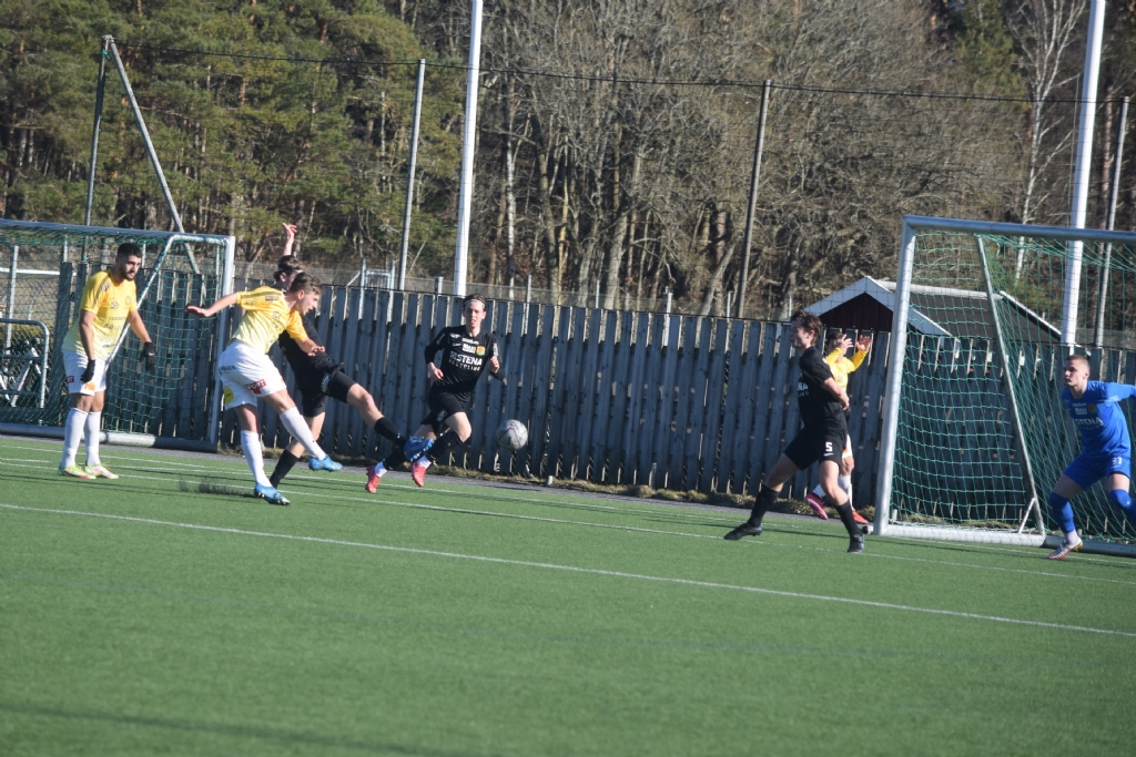 Philip Hällgren klipper till ett bra skott som räddas till en hörna