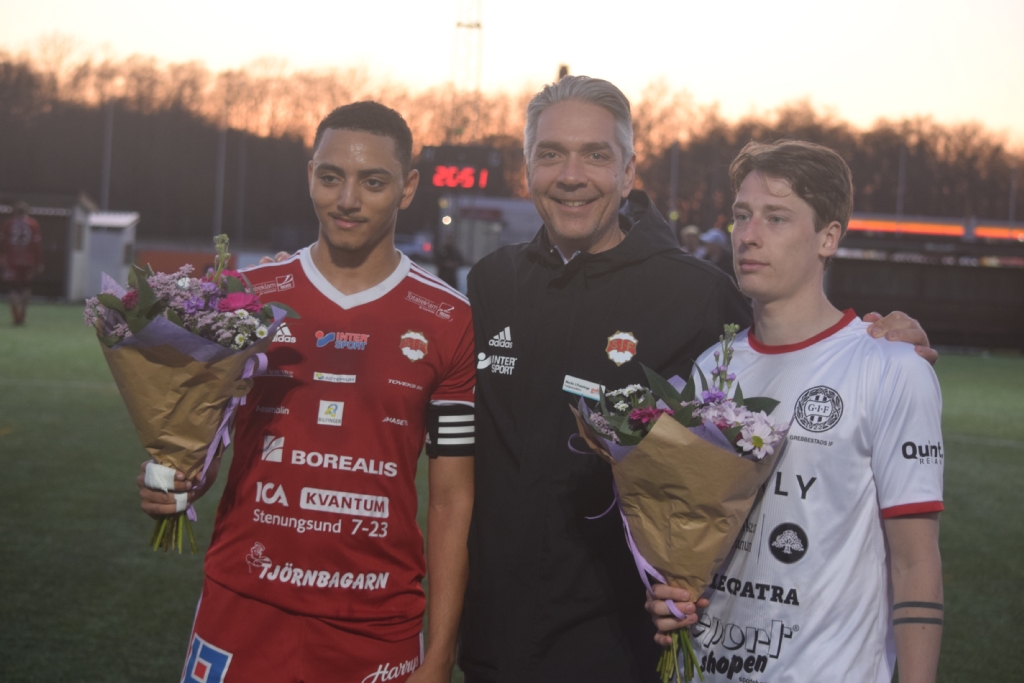 Stenungsund delade ut pris till matchens lirare i resp lag, Stenungsunds Dylan Andersson Fortes och Grebbestads Victor Edvardsson