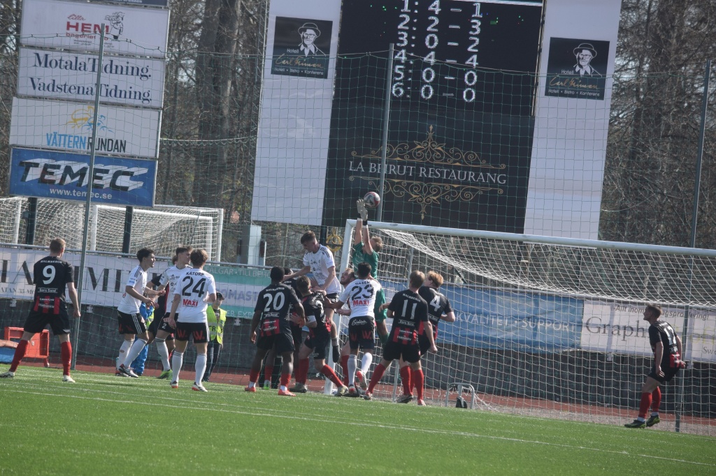 Bildserie, bild 1 av 2 Motalahörna ochOliver Bergman får inte tag på bollen...