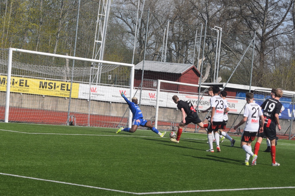Friläge Anton WEngelbrektsson men Edrisa Bojang klarar med en fotparad