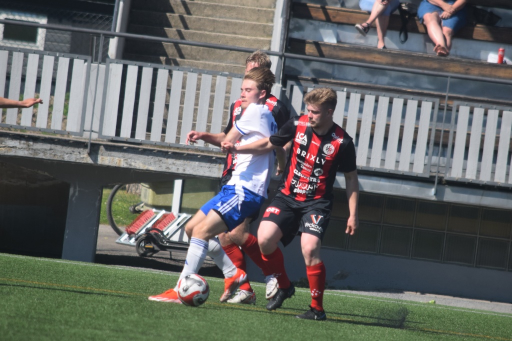 Kamp om bollen. Victor Jägerbrand och Jesper Mattsson lite dold