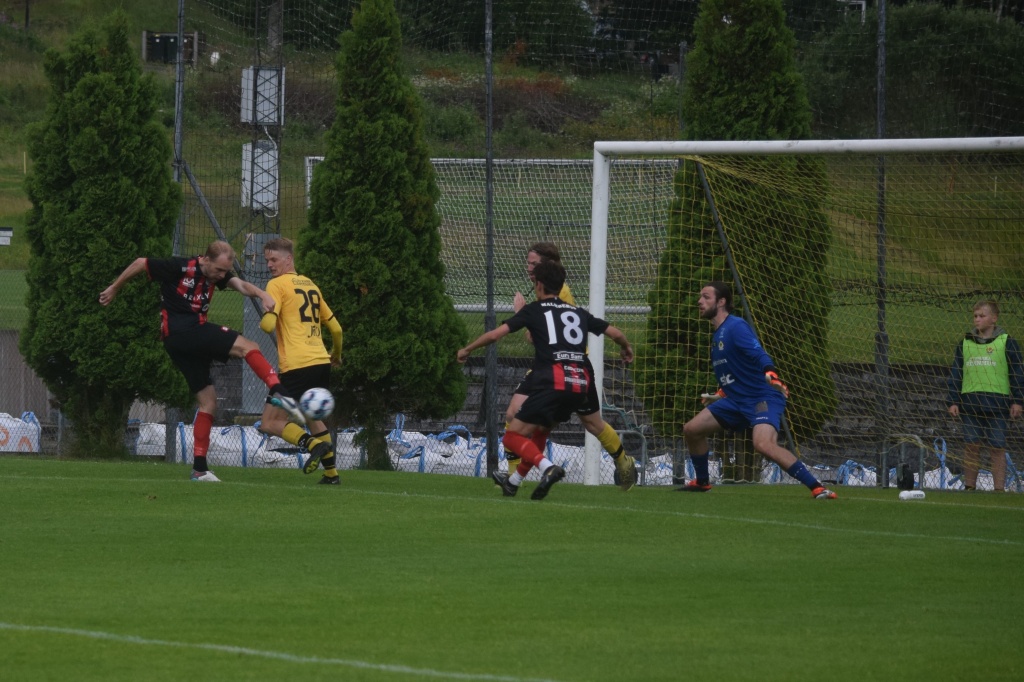 Bildserie, bild 2 av 3 Efter nicken dimper bollen ner perfekt för Anton Henriksson som klipper till...