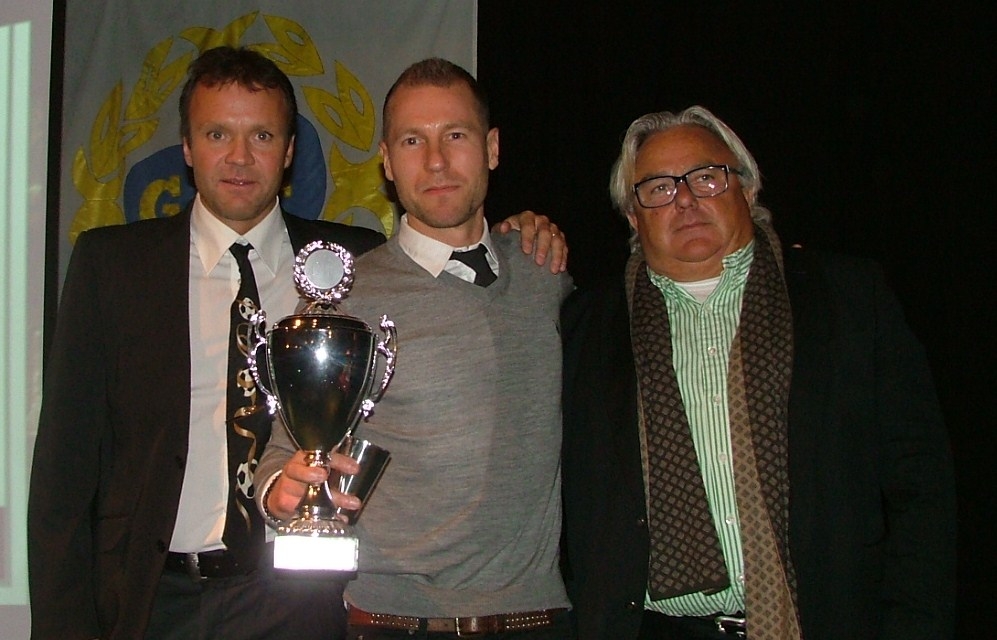 Advokatcentrum Skövdes pris till bästa målskytt i A-laget till Jonas Henriksson, 22 mål. Prisutdelare Jonas Henriksson och Staffan Uvabeck