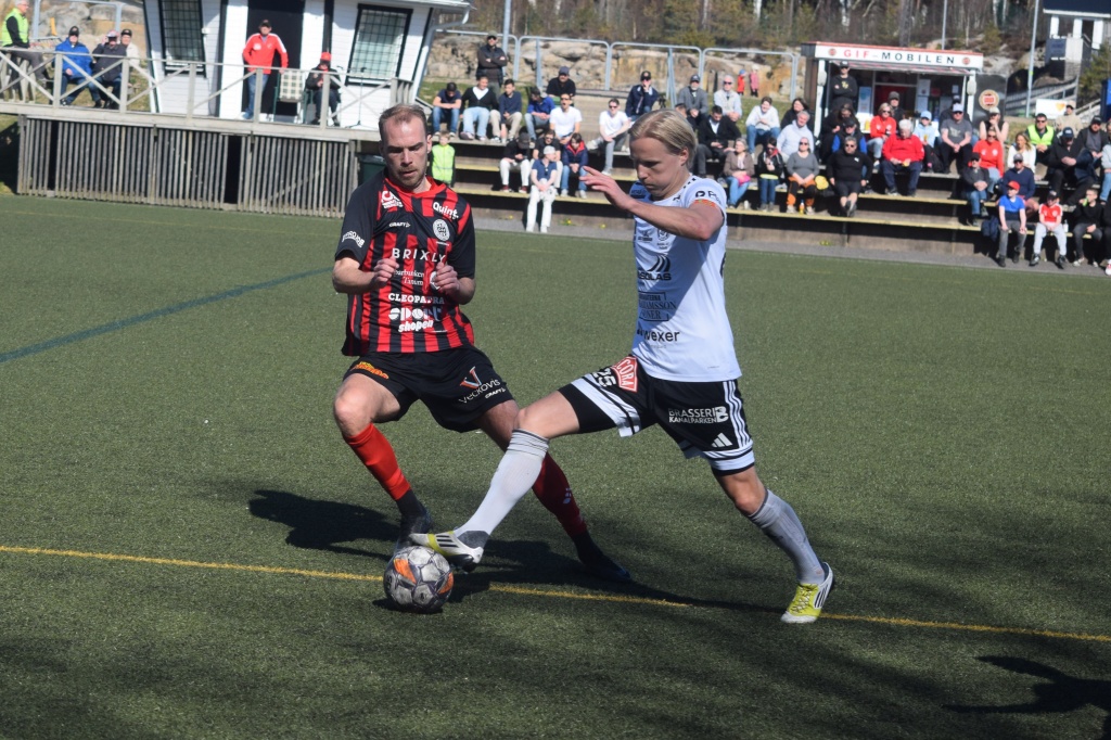 Anton Henriksson kämpar om bollen med Simon Karlsson