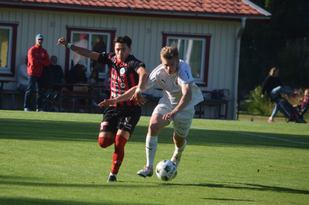 Henrik Hjellegjerde och Erik Jönsson i kamp om bollen