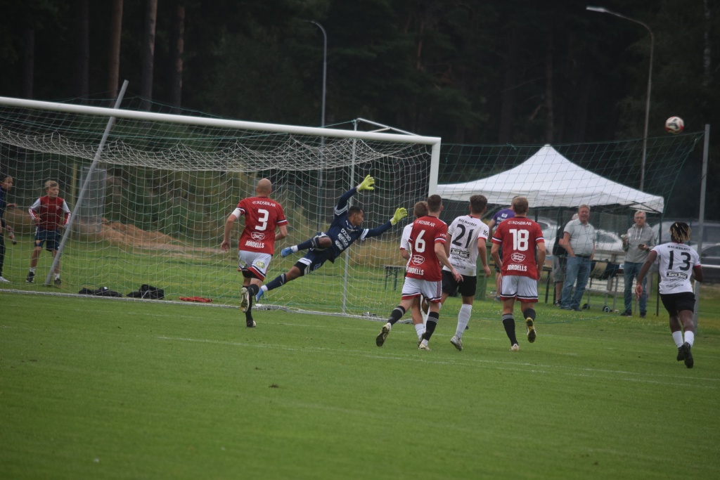 Simon Hedman slänger sig efter Amel Licinas frispark som dock smiter utanför