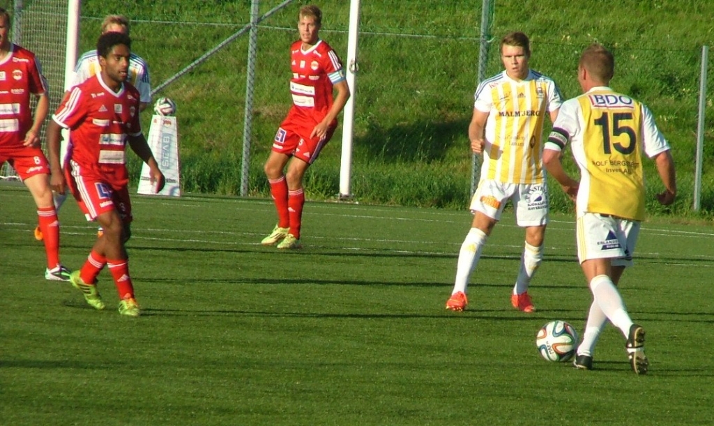 Markus Svensson på väg fram och han tittar efter bästa möjliga passningsväg
