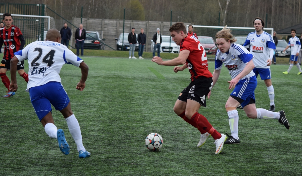 David Olsson i kamp med Rynninges Simon Leonidsson och Alexander Florén