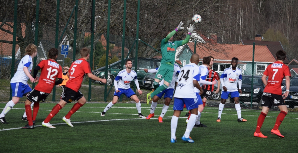 Rynninges målvakt Andreas Carlström på väg ut för at fånga bollen