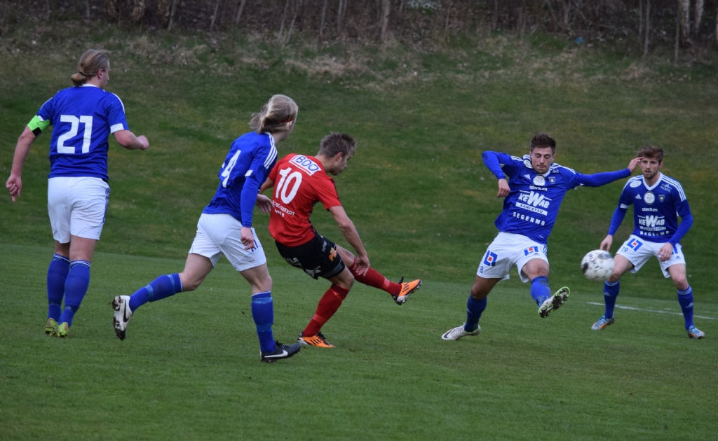 Olle Kristoffersson klipper till och får en bra träff men bollen går precis utanför.