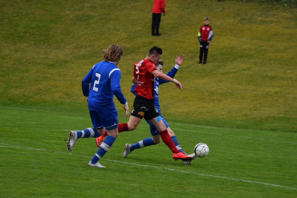 Leonard Pllana på väg igenom med stoppas av Mikael Hagström