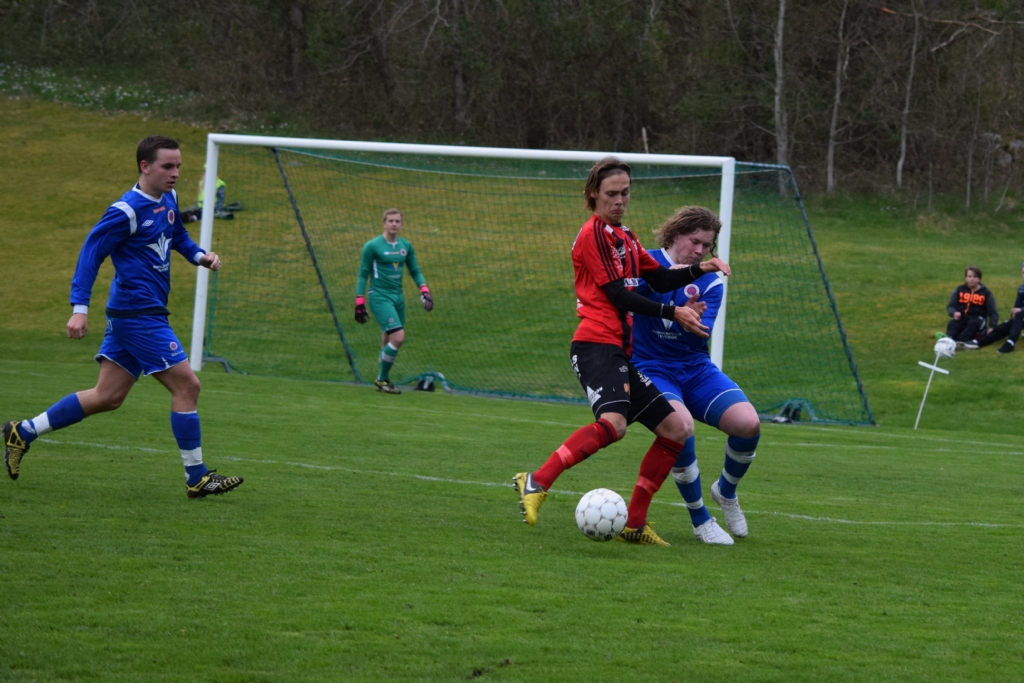 Tobias Carlsson ovant högt upp i planen när han hänger kvar efter en hörna eller möjligens en frispark. Här i kamp med Anton Olsson