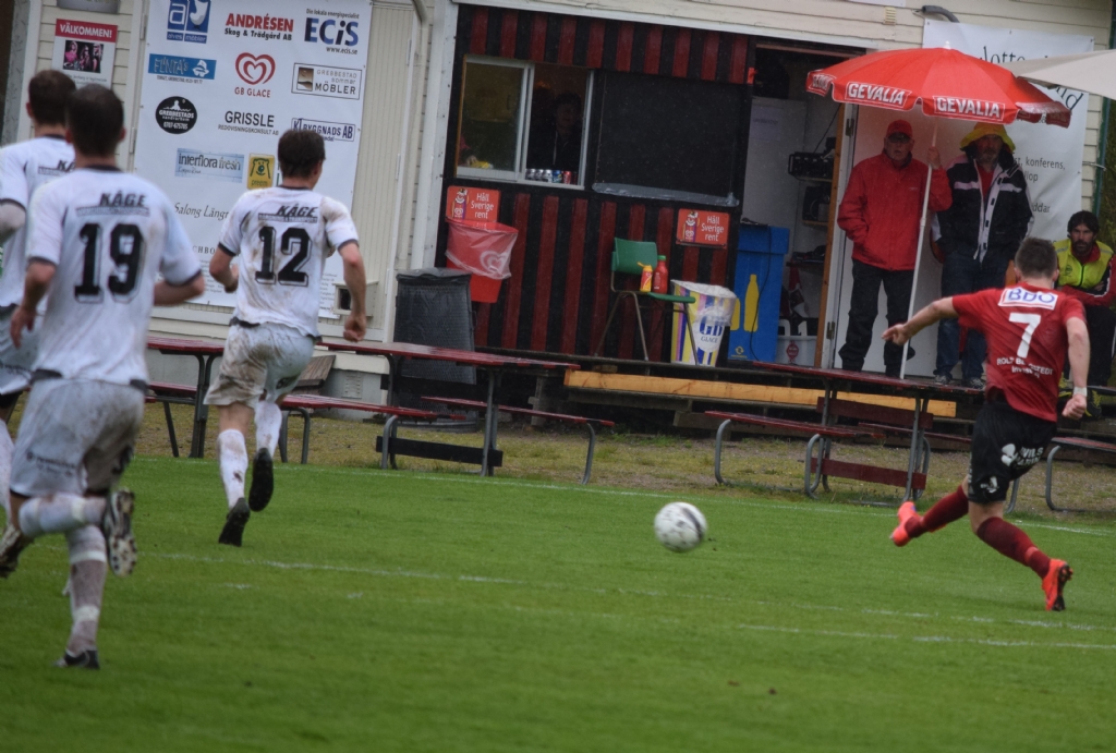 Leonard Pllana sätter med detta skott 1-0 för Grebbestad