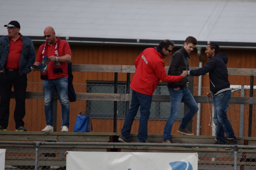 Jonas Söderlund för dagen i GIF Ultras hälsar på Stenungsunds Ibrahim Tahini