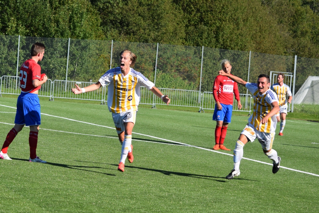 Mattias Svensson jublar tillsammans med Granit Berisha efter Mattias härliga 2-3 mål
