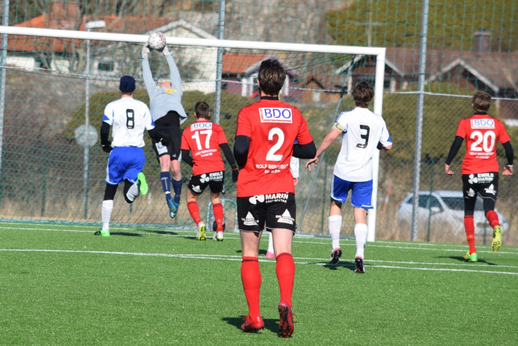 Richard Johanssons lobbförsök når inte över Skärhamns målvakt Eric Jansson som klarar.