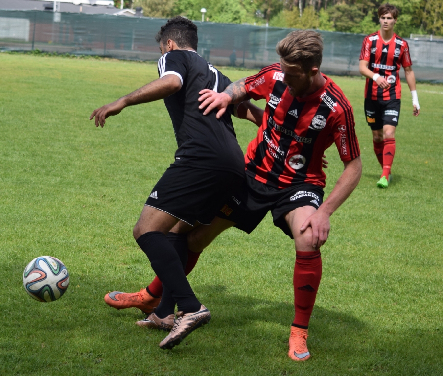 Jihad Nashabat täcker bollen i kamp med Felix Norén