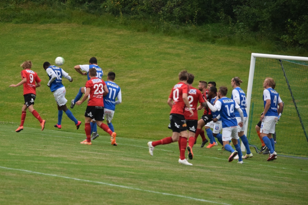 Mattias Svensson nickar på en Grebbestadshörna tidigt i andra halvlek men nicken smiter precis utanför