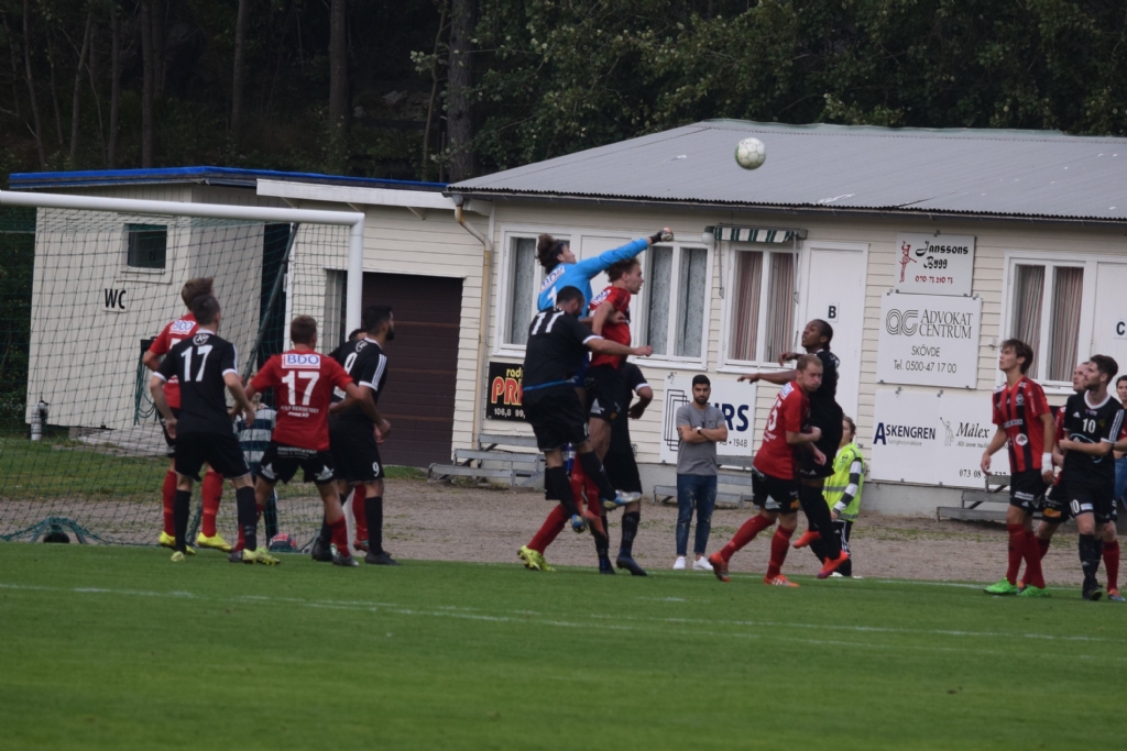 Kristoffer Björk kommer ut fint och boxar bort en KOrtedalahörna
