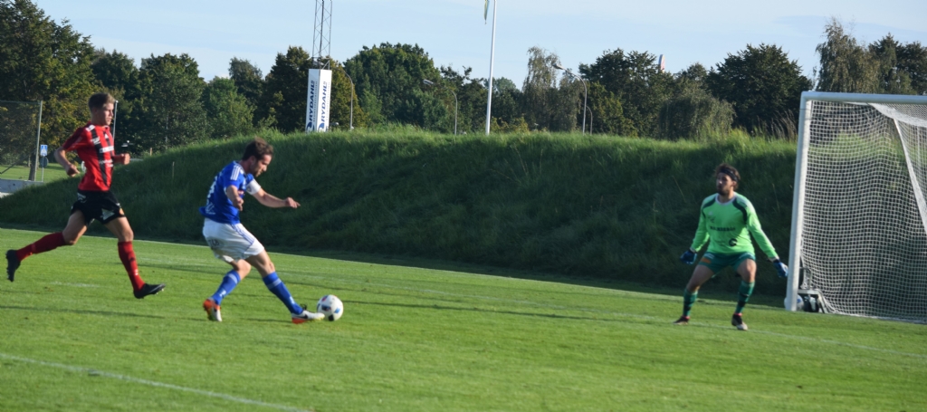 Bildserie, bild 1 av 2 Gazmend Bahtiri har löpt sig fri och skjuter....2-0