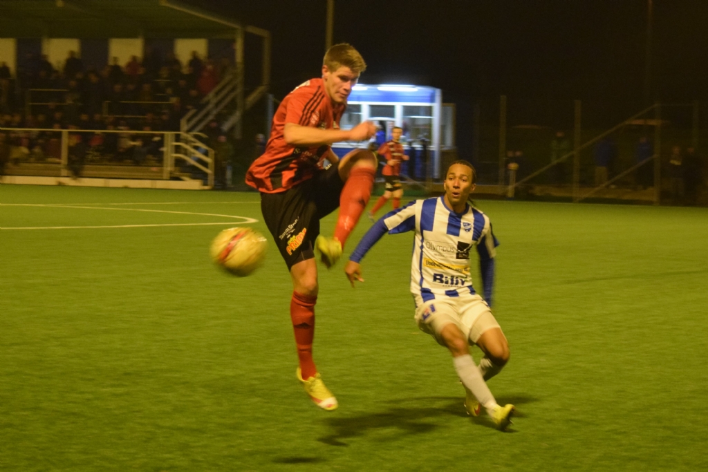 Ulrik Karnström tar undan bollen framför Ibrahim Tahini