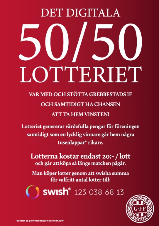 Du kan stötta GIF och vinna pengar genom att köpa digitala 50/50-lotter till matchen mot IFK Åmål på söndag, trots att Siljevi inte är öppet för publik .... Se infon på bilden hur man gör ! TACK för att Du stöttar GIF.