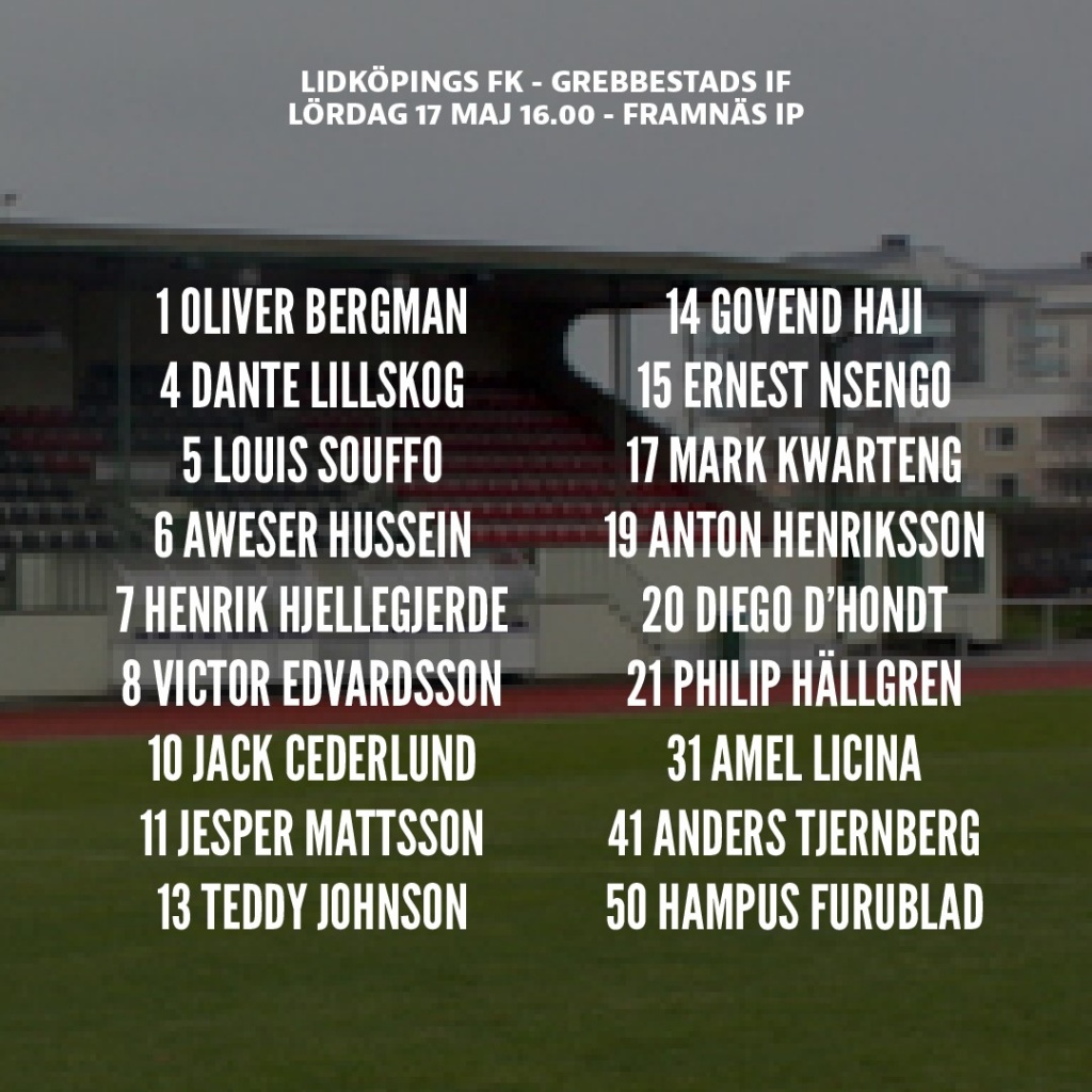 truppen mot Lidköping ser ut som följer: