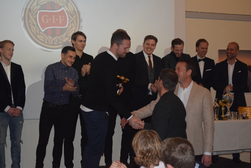 Grebbestadspelarna har äntligen fått pokalen för segern i DM. Pokalen tas emot av vice kapten Jimmie Larsson