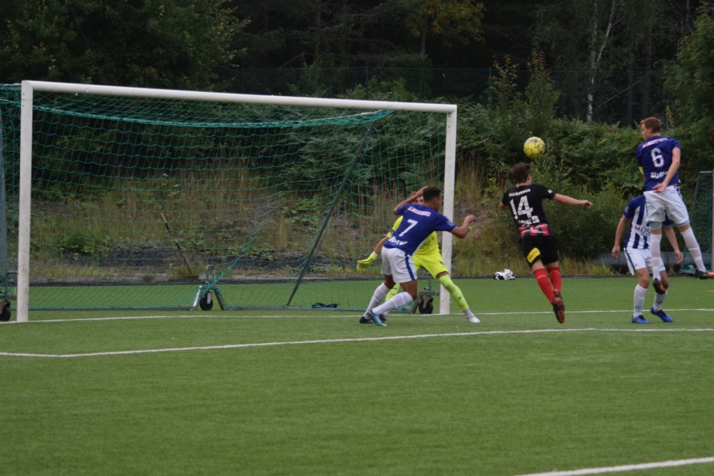 Bildserie, bild 1 av 3 Oskar Lindberg smiter fram och nickar på Anton Henrikssons nick in centralt...