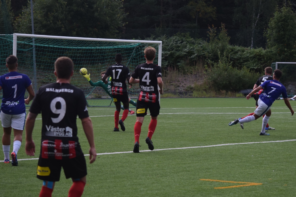 Bildserie, bild 2 av 3 Lucas Hallberg Wotangos skott mot mål. Jonatan Hårenberg hinner inte riktigt med...