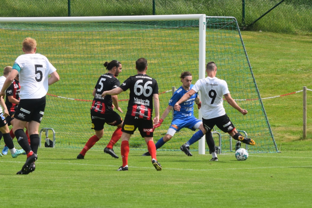Gustav Kjellström med ett fint läge i början av matchen men Mattias Jansson klarar