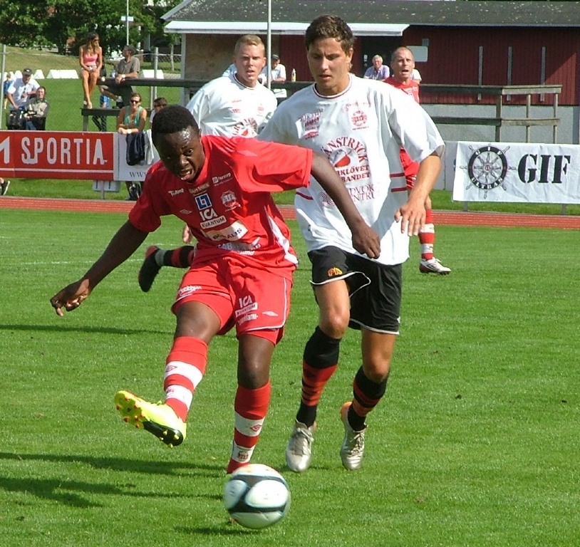 För en gångs skull är Daniel Andersson steget efter Stenungsunds John B Niyonsaba som slår en passning framåt.