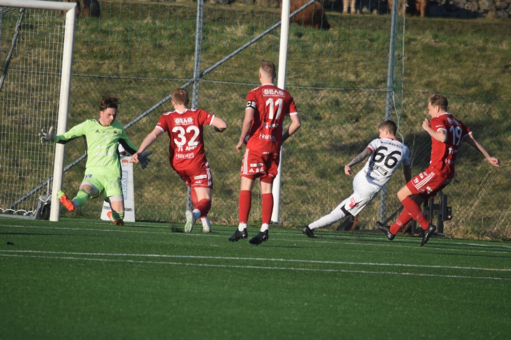 Oscar Landgren med jätteläge i andra minuten men en försvarare eller möjligen målvakten täcker till hörna