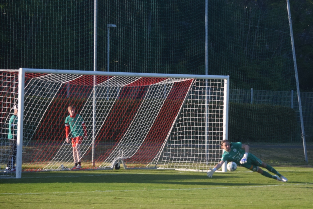 Bildserie, bild 2 av 3 Mattias Jansson dyker efter Gustav Forssells skott...