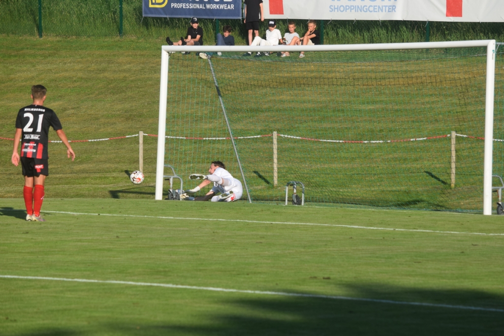 Emil Augustsson har löpt in och får bollen på sig och den styrs farligt mot första stolpe där Mattias Jansson gör en fin räddning