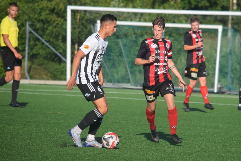 Haidar Omar med bollen och Victor Edvardsson lätt fram för att störa