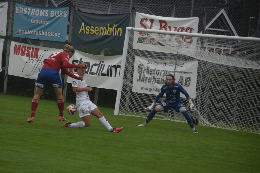 Philip Hällgren fram och täcker Jacob Bergs skott