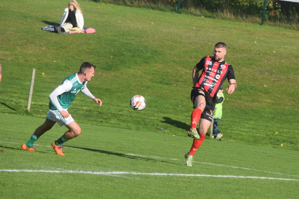 Mehmed Dresevic med höger yttersidepassning förbi Marcus Larsson