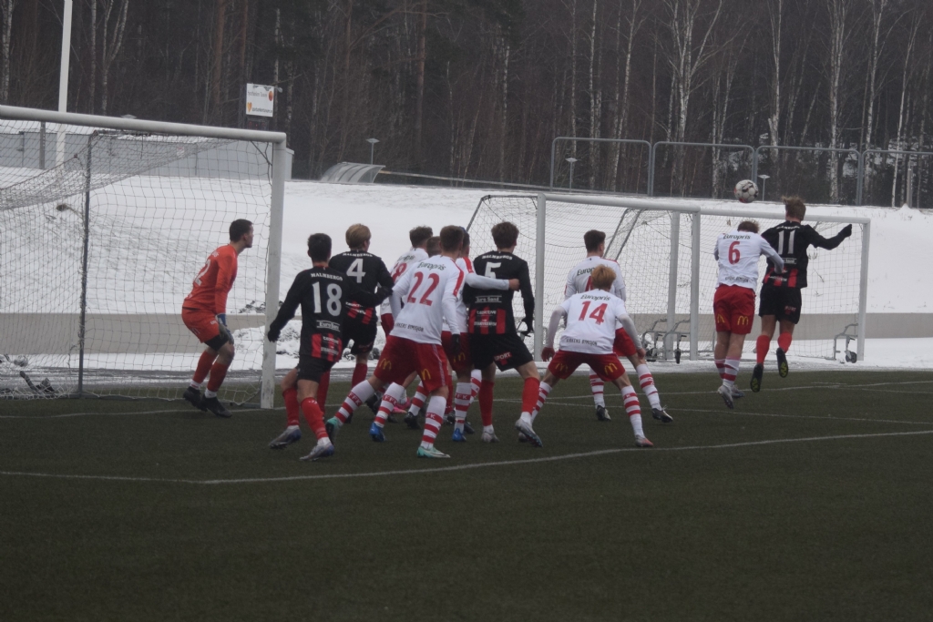 Bildserie, bild 1 av 2 Jesper Mattsson nickar på Viktor Adebahrs hörna...