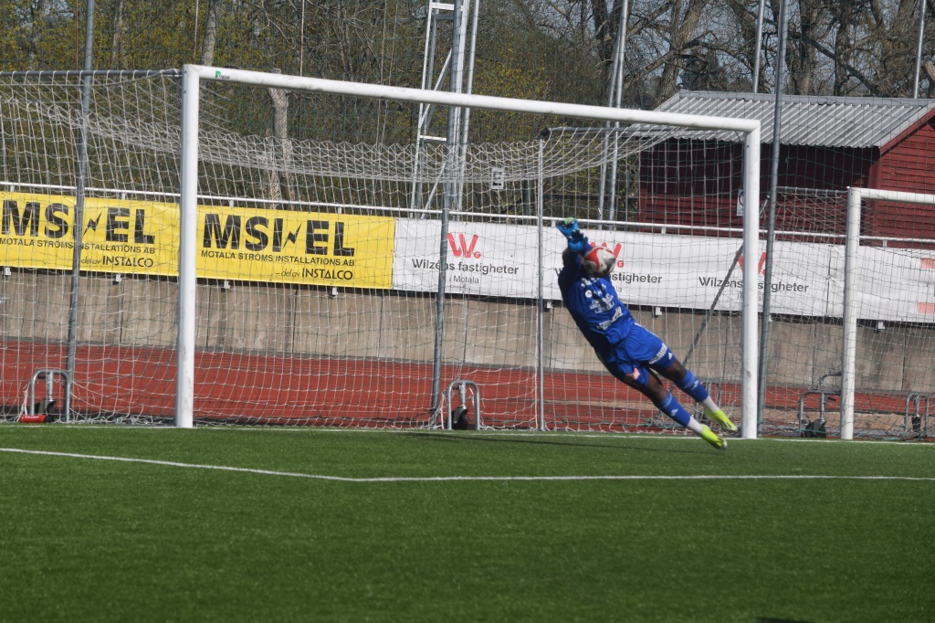 Bildserie, bild 1 av 4 Edrisa Bojang klarar Viktor Adebahrs frispark men det blir retur...