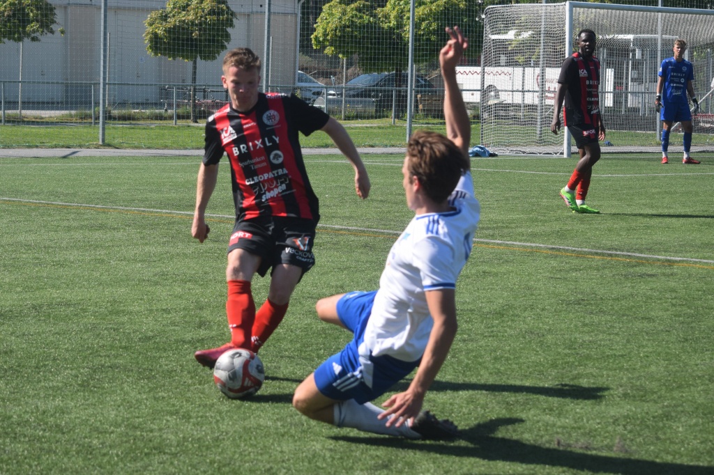 Viktor Arthur skall spela upp när en Kumlaspelare kommer flygandes och det hela slutar med frispark för Grebbestad
