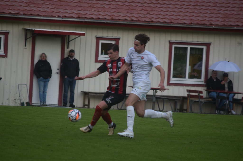 Oscar Landgren kämpar om bollen med Kongahällaspelare