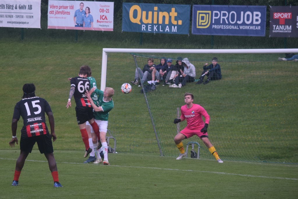 Oscar Landgren framme och nickar men här blir det inget mål