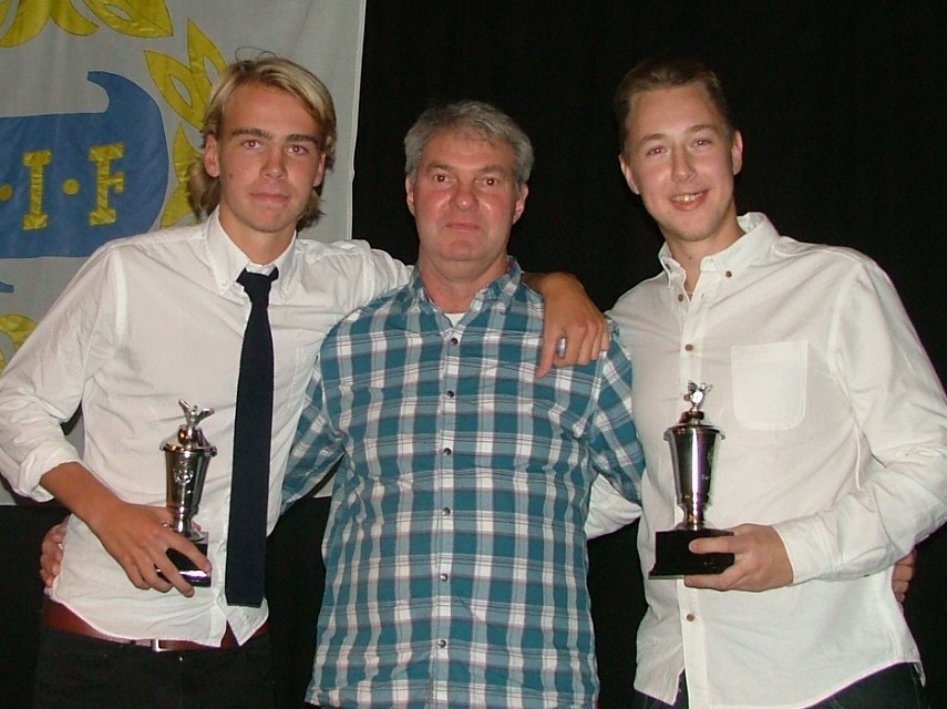 Lars Andersson, som spelat 510 matcher i GIF, delade ut pris till Anton Henriksson och Christian Matsson som båda nu gjort fler än 100 matcher för Grebbestads IF.
