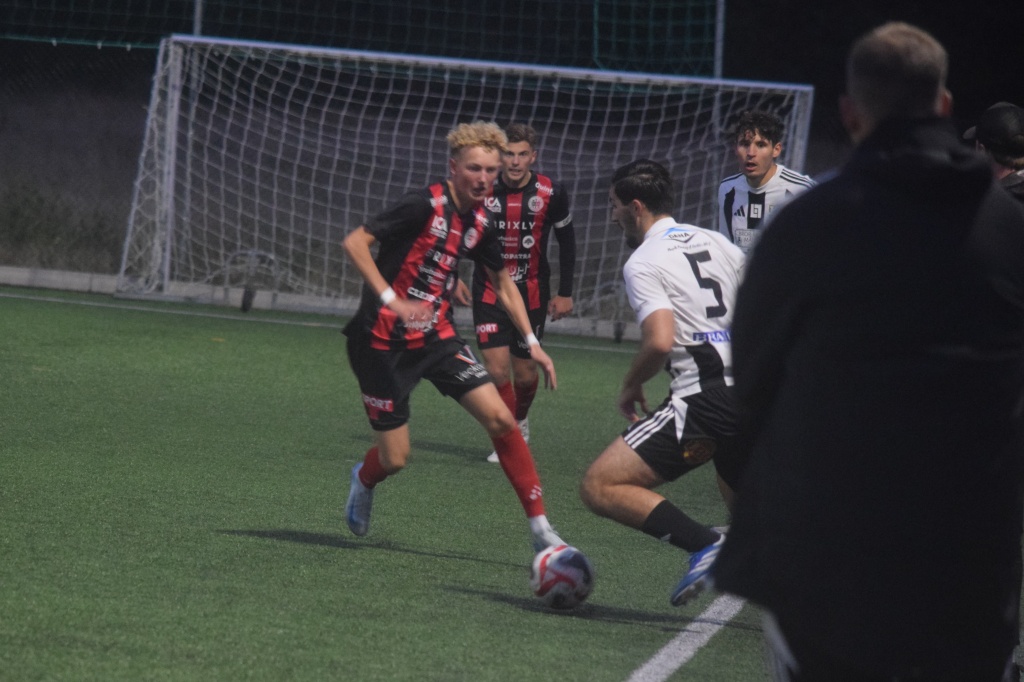 Jack Cederlund går på Mohammed Hossein Omar. Vi ser även ryggtavlan på förre Grebbestadstränaren Mattias Pettersson-Pohl
