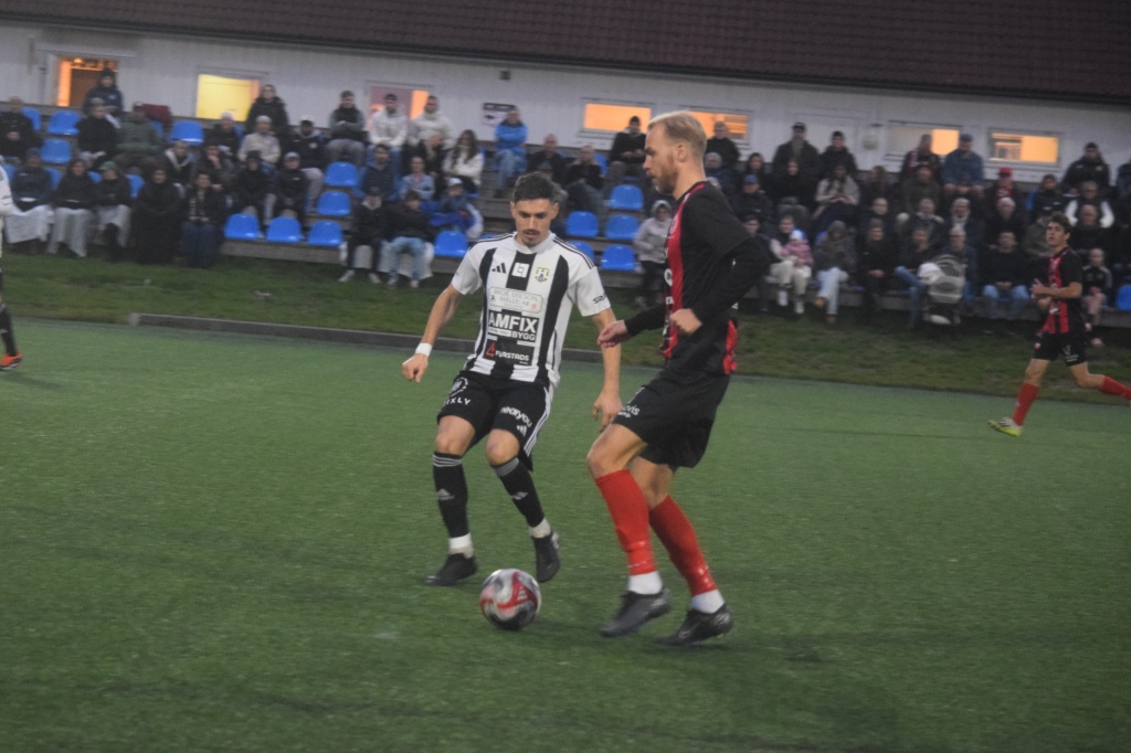 Anton Henriksson med passning framåt när Sylejman Hoxhaj kommer